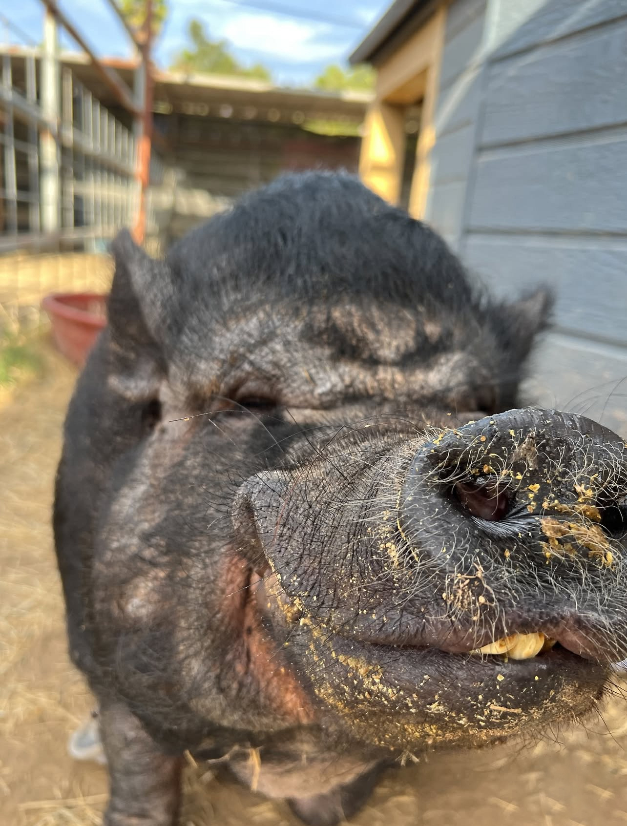 Ben, Our Sweet Old Soul. Ben is one of our oldest pot-bellied pig residents, rescued back in 2018 from the very first hoarding case we ever took in. He has been part of our family ever since, and he’s truly as sweet as they come. |